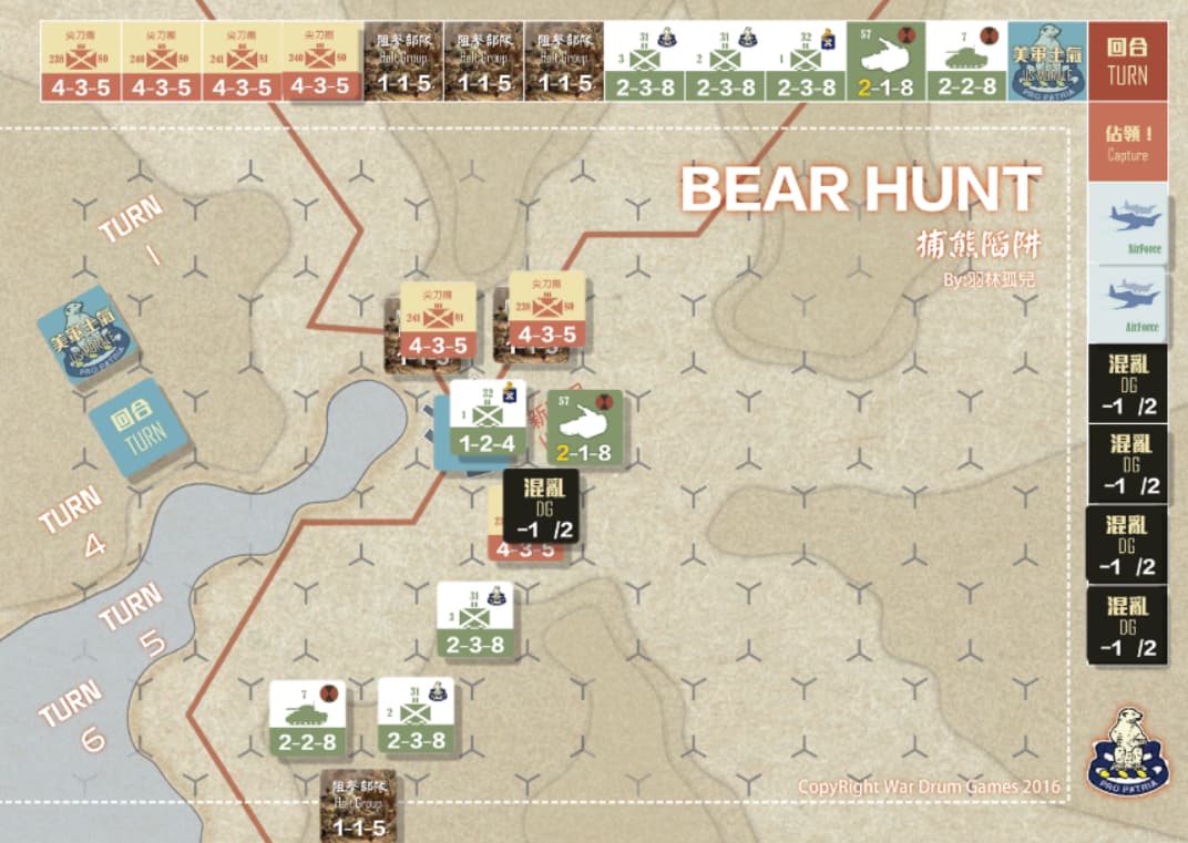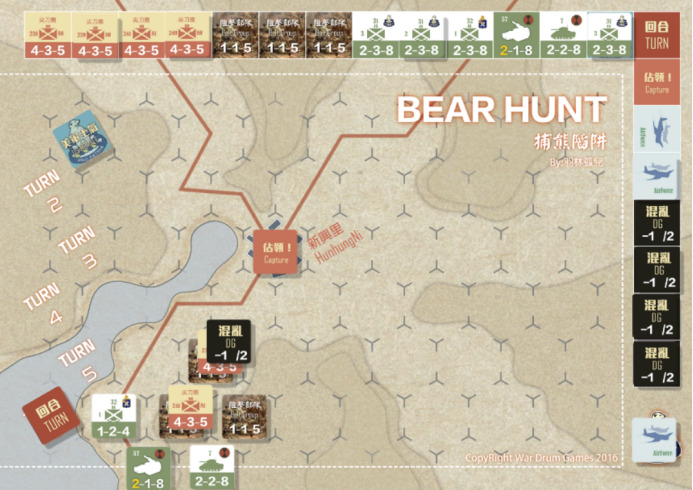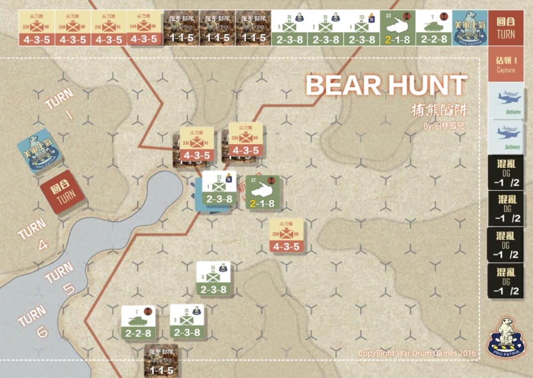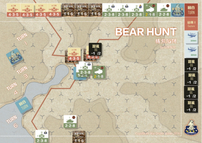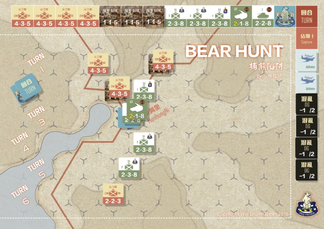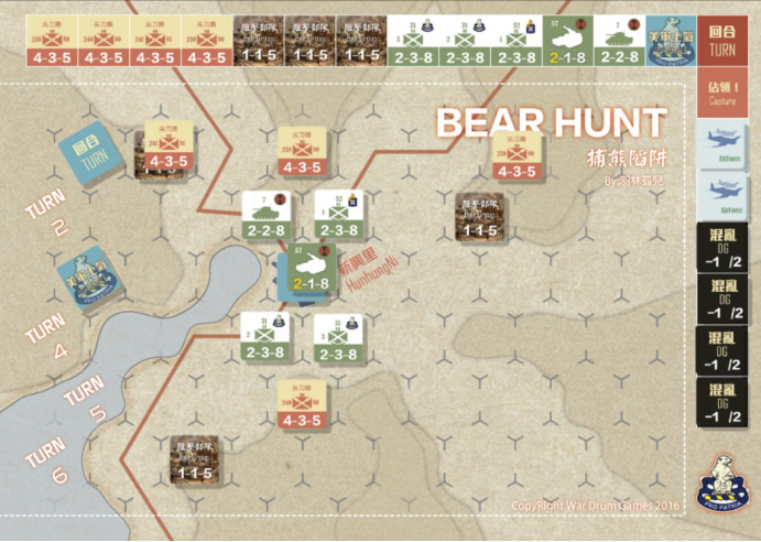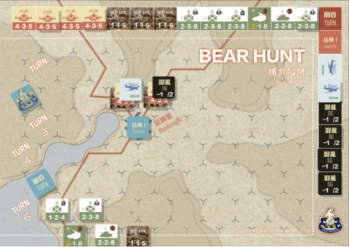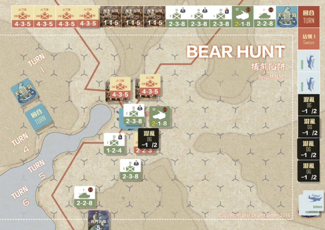 棋友们好!今天我们来玩一款以抗美援朝为背景的明信片兵棋:捕熊陷阱。作者羽林孤儿。