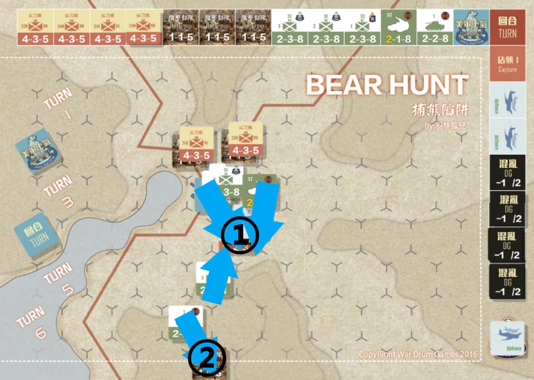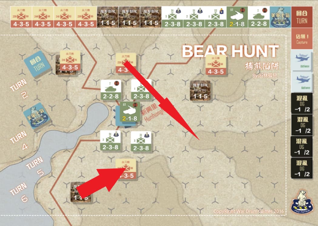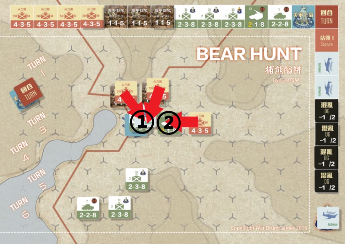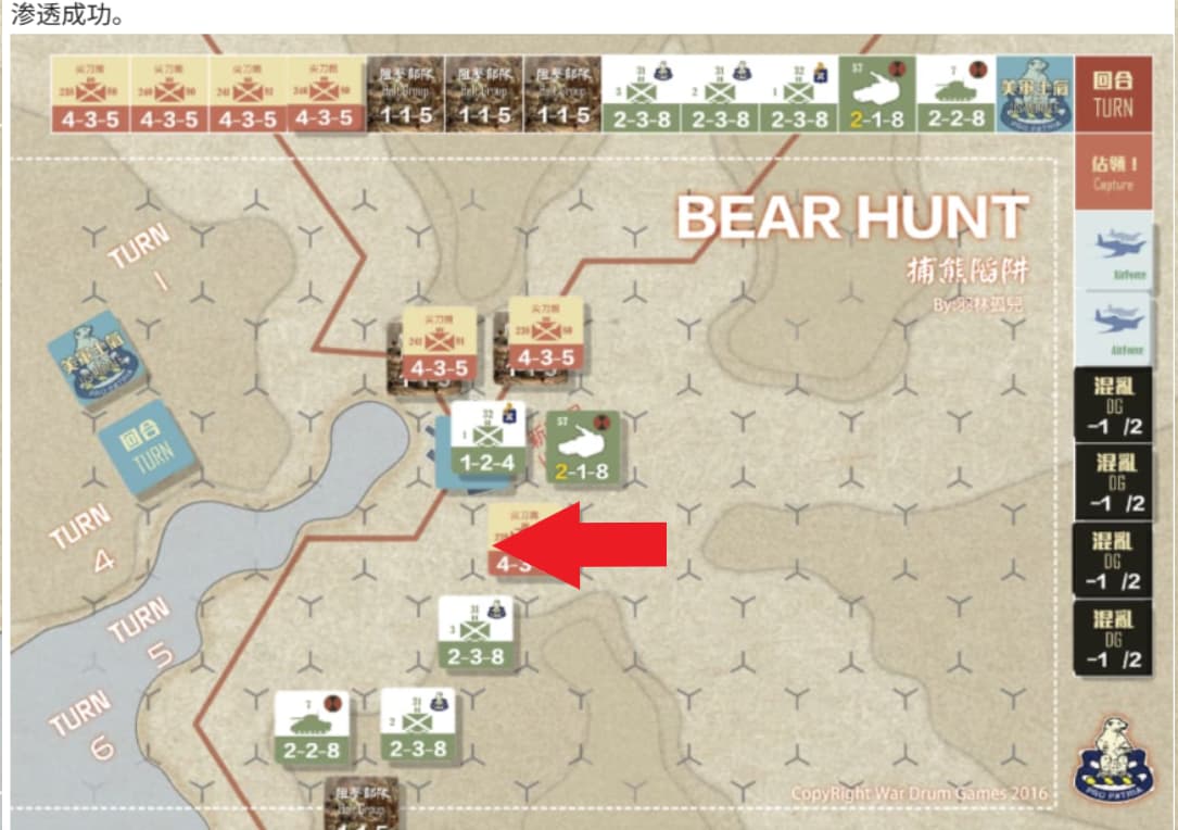然而这回老天爷站在了志愿军一边。双方先手判定点数相当,由志愿军玩家决定先后手。志愿军当然选择自己先手。