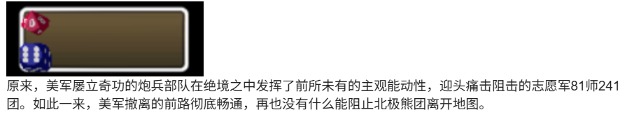 然而志愿军在南方进行渗透工作的穿插连被歼灭时触发战斗英雄效果,志愿军战士拼死抵抗,使得美军本次战斗无法战后推进。松动的ZOC链,为志愿军保留了最后一丝胜利的希望。