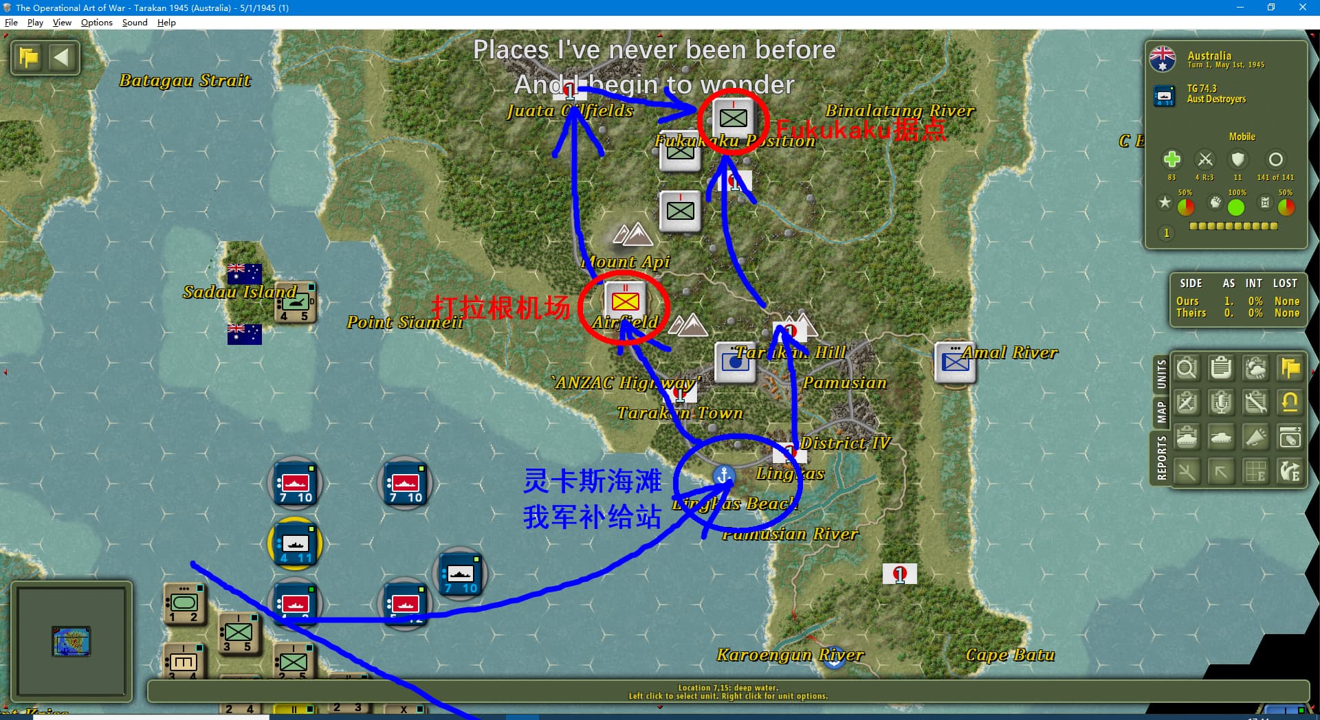 蓝色表示我军,即澳大利亚军队。