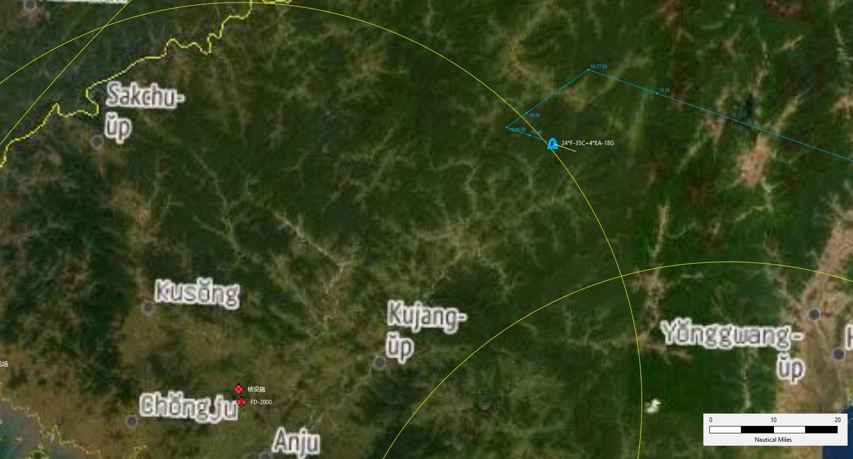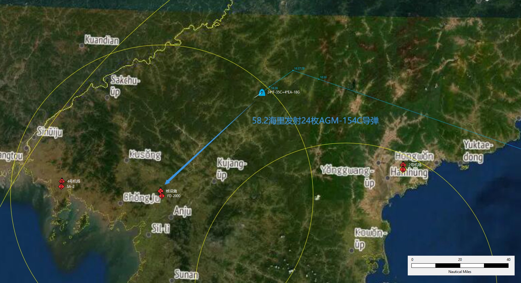 06:39:30,F-35C抵达预定位置投弹,进入FD-2000雷达警戒圈。由于F-35C正面特征为“隐形”,NK雷达仅发现4架EA-18G。
