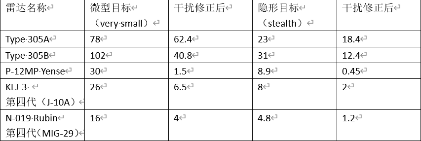 本次推演涉及到的所有NK雷达探测距离见下表: