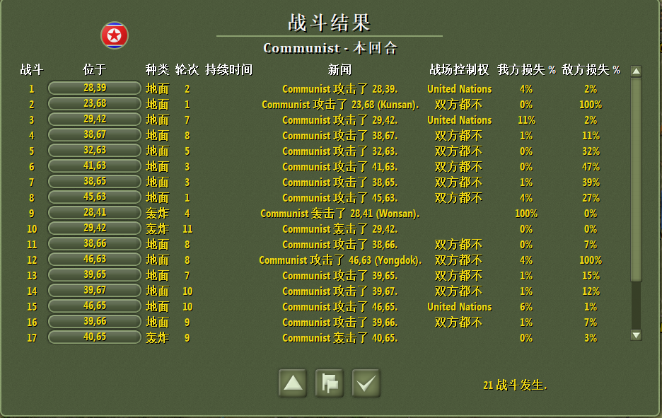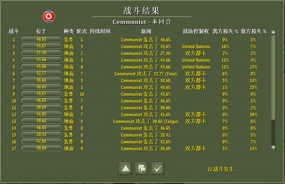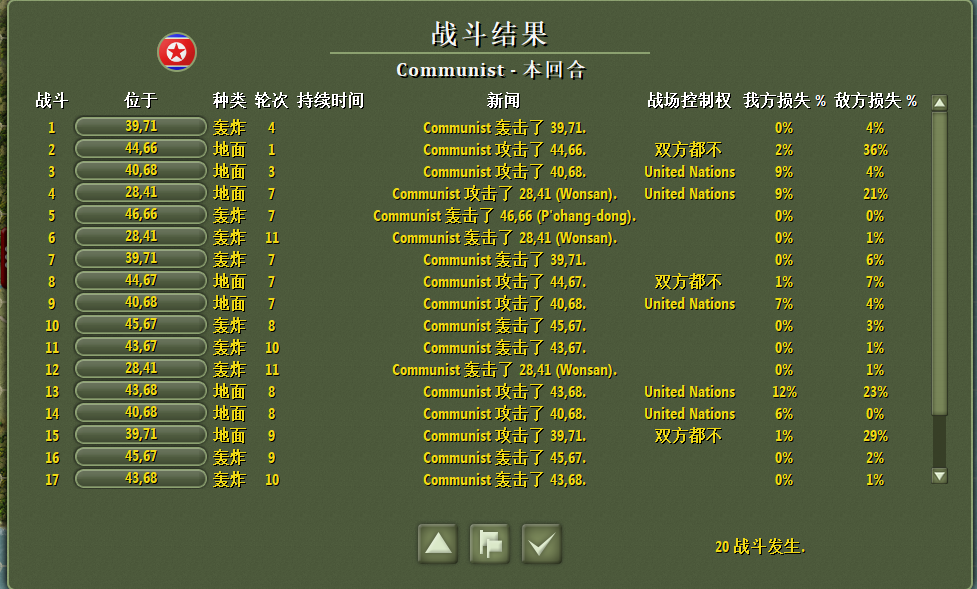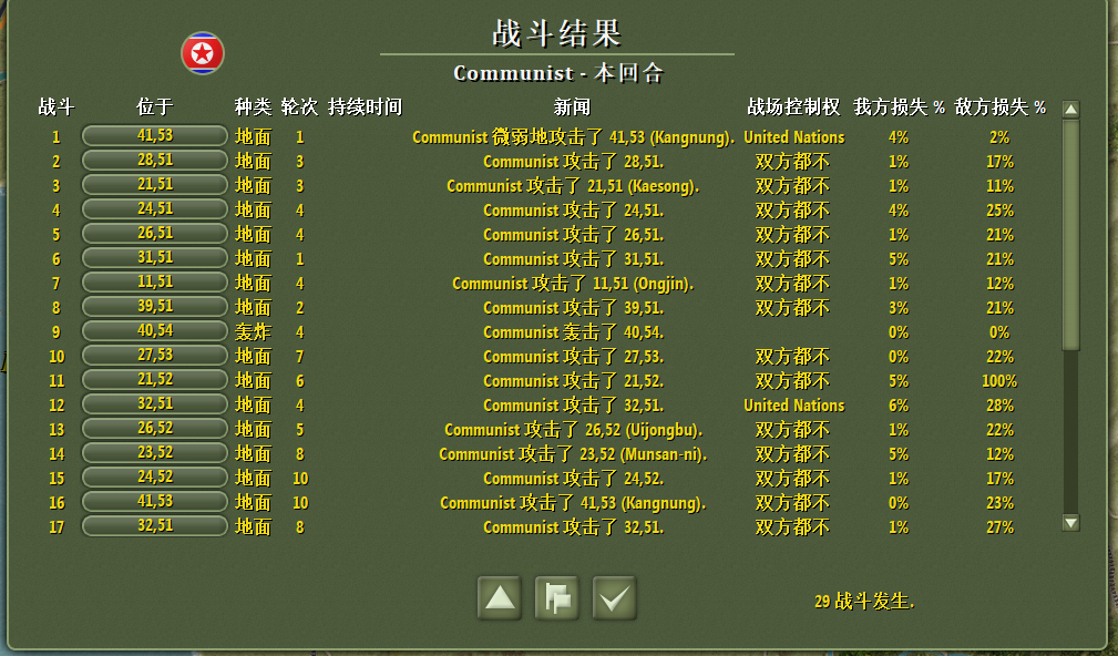 前方釜山大势已去,部队全面撤退;后方部队清理元山附近残于美军;增援部队向首尔方向开进。