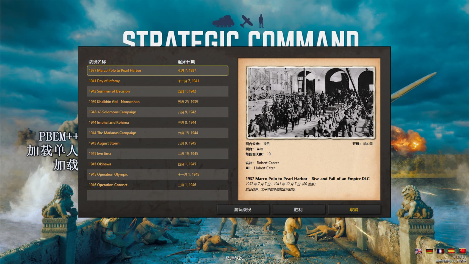 玩了两天,还是蛮不错的,就是SC系列的系统大战略玩法,就是日本AI还是不够聪明,MPP也不够多,总体体验而言这抗战用天朝方还是有点轻松,喜欢这个系列的玩家可以去试试,当然这次的DLC可不止抗战一个战役,包含了1944年英帕尔,1942年中途岛前夕的决战之夏,1945年的冲绳战役,还有两个IF战役,45年底奥林匹亚行动和46年初王冠行动,分别是假象的联军登陆日本九州和关东平原