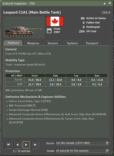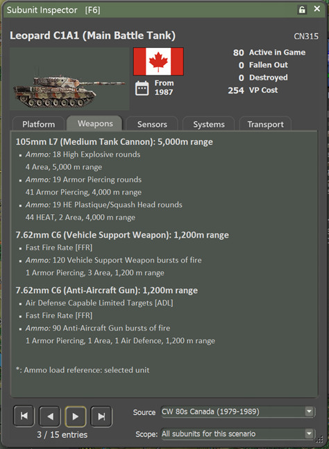 你将指挥第 22 皇家团(1 R22eR ),其编制包含以下装备与单位:16 辆山猫装甲车、6 辆侦察车(重复 “6 Scouts” ,推测是不同类型或表述笔误 )、6 架 CF - 18 “大黄蜂” 战机、80 辆豹 C1A1 坦克、4 架 SA 342 “小羚羊” 直升机、4 架 CH - 136 “基奥瓦” 直升机([m] 可能是特定标识 )、1 辆 M113A1 装甲车、153 辆 M113A2 装甲车、96 个机械化步枪单位、2 挺.50 重机枪、22 具卡尔・古斯塔夫无后坐力炮、36 具 M150 武器、15 具吹管防空导弹、16 具 M125 装备、24 门 M109A4B + 自行火炮、3 套 M270 多管火箭炮系统(M26 型 )、35 个指挥部单位、24 辆 M577A2 C2V 指挥车、1 个指挥部、1 辆 AMX - 10PC 车、1 辆 M577A2 C2V 指挥车、8 个固定前沿弹药与油料补给点(FARP (Static) )、8 辆 TRM 4000 车辆([m] 标识 )、2 辆 P4 VLTT 车辆([m] 标识 )。