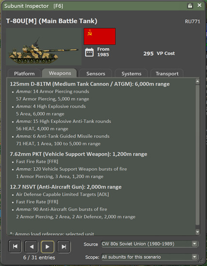先头的两个坦克团将得到其团属炮兵群的支援。师属炮兵群的炮兵营也极有可能为这两个团提供支援。苏联攻击直升机部队遭受了严重损失,所以我们不太可能遭遇它们。短期内有可能会投入一些火箭炮(BM-21 型)。预计它们(相关部队等,结合前文应是威胁评估里的部队)会处于地图列 29 至 81(含)以及行 18 至 40(含)所界定的区域内。