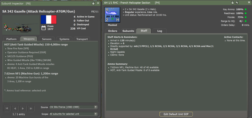- 航空力量:444 直升机中队将于 10 时提供 4 架 “基奥瓦” 直升机。此外,两队法国攻击直升机分队将于 10 时左右抵达。