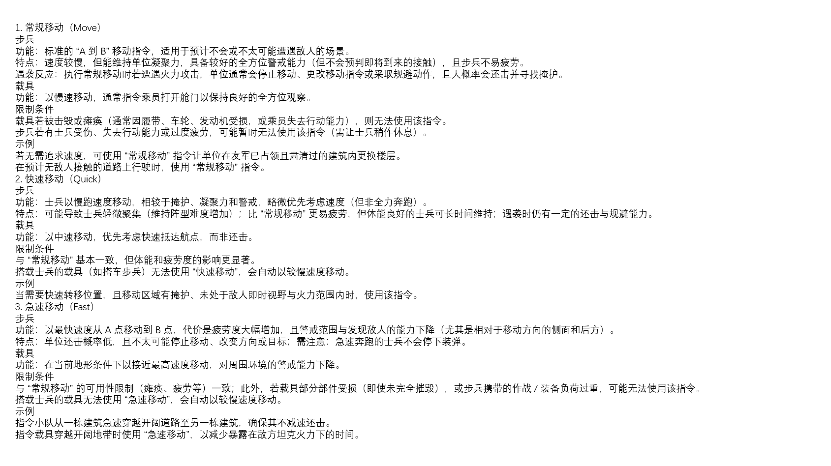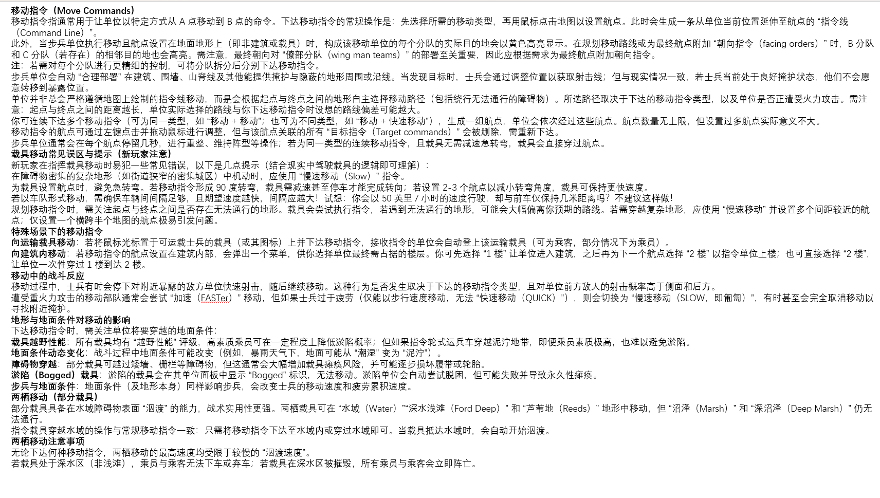 - 车辆转移阵地(从火力点或隐蔽处移动)时,需以最大速度行驶,但避免下达过短的“快速移动”指令——否则坦克可能停在开阔地带,而指挥延迟(游戏规则设定)会导致后续移动指令需等待十几秒才能执行,这十几秒的停滞足以让坦克沦为燃烧的残骸;