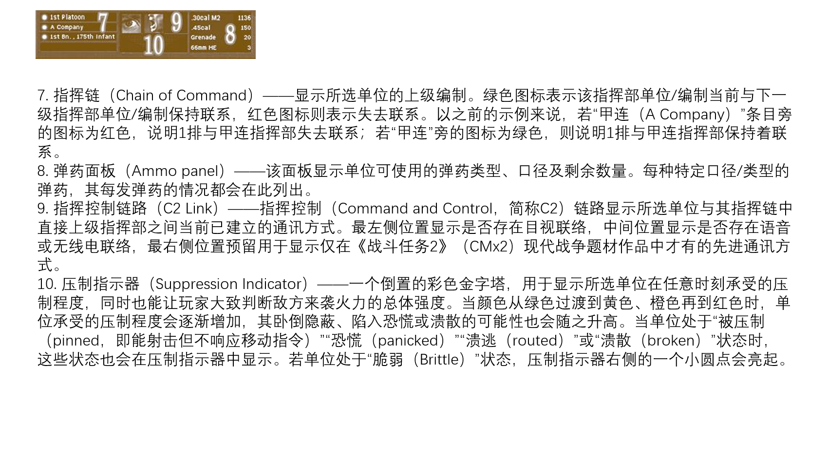 在《战斗任务:霸王之后》(以下简称CMBO)中,坦克单位没有专属的编队与指挥体系(这一点与后续作品CMBB、CMAK不同),且“快速战斗”(QB)模式允许单独购买坦克(而步兵需以排为单位购买)——这使得许多玩家将坦克视为独立作战实体,在战场上寻求史诗级单挑或单独缠斗。但这与历史事实大相径庭:二战期间,坦克部队的各车辆协同与“编队运用”首先是战术刚需,其次才是编制层面的要求。