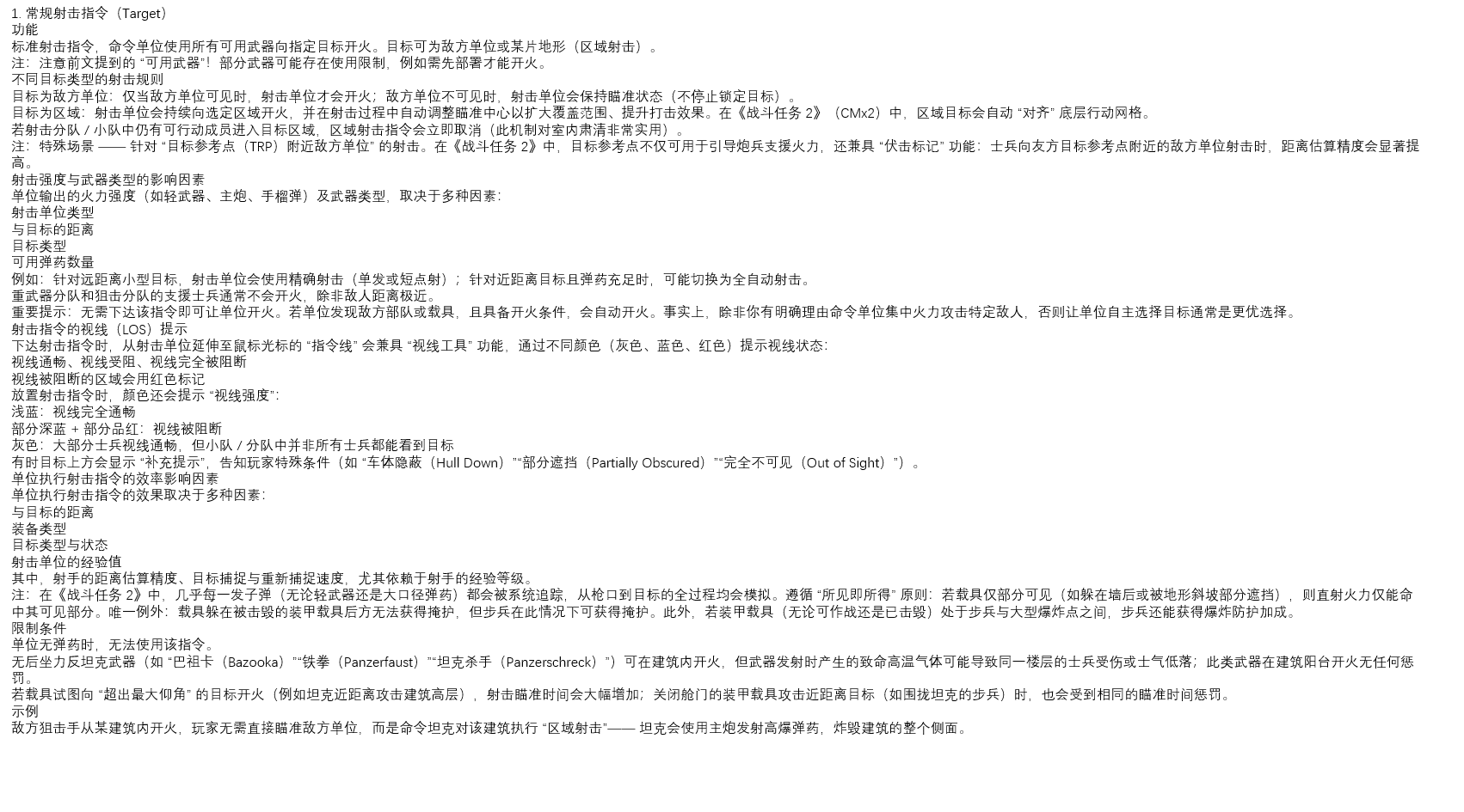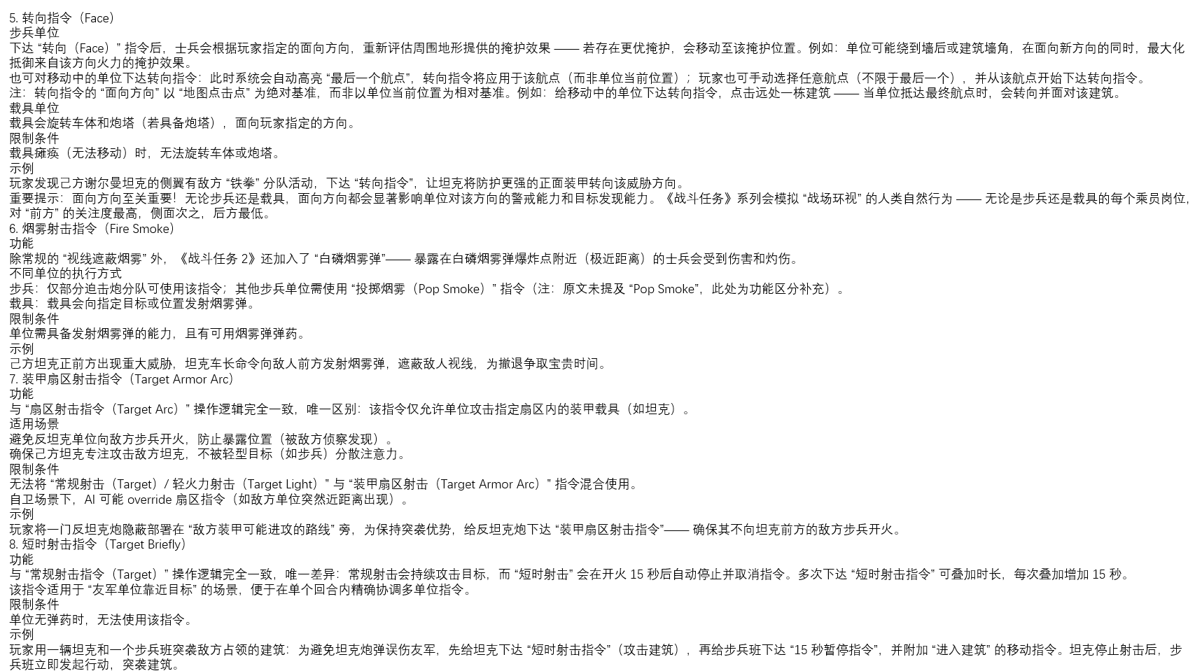 - 定位德军坦克与坦克歼击车后,若其远离主攻区域则牵制,若威胁主攻则通过快速突袭、迂回包抄或侧后伏击将其消灭;