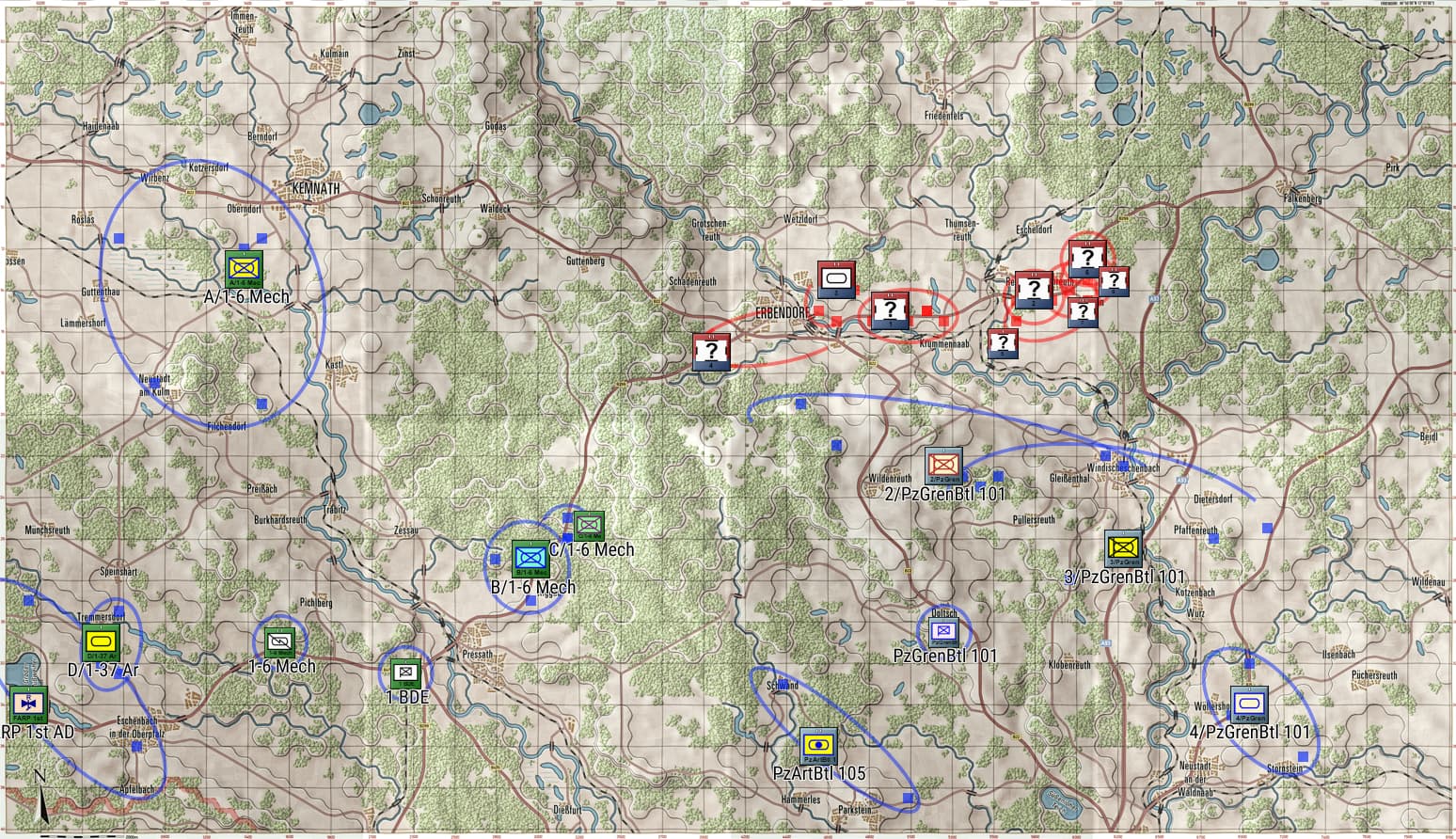很快,车长耳机里又传来 A连长的通报:“‘矛头’,我部在你东北侧,准备度过schallein河,当前区域海拔 2,植被掩护还算可以,但地面太泥泞,部队机动效率掉得厉害。” 我下意识摸了摸胸前磨得发亮的狗牌,忽然想起爷爷讲述二战时躲在坦克底下的模样 —— 如今我们是 “铁皮罐头” 里的人,可若捷克的 T-55M 真从雾中涌出来,这 “罐头” 能不能扛住,心里实在没底。