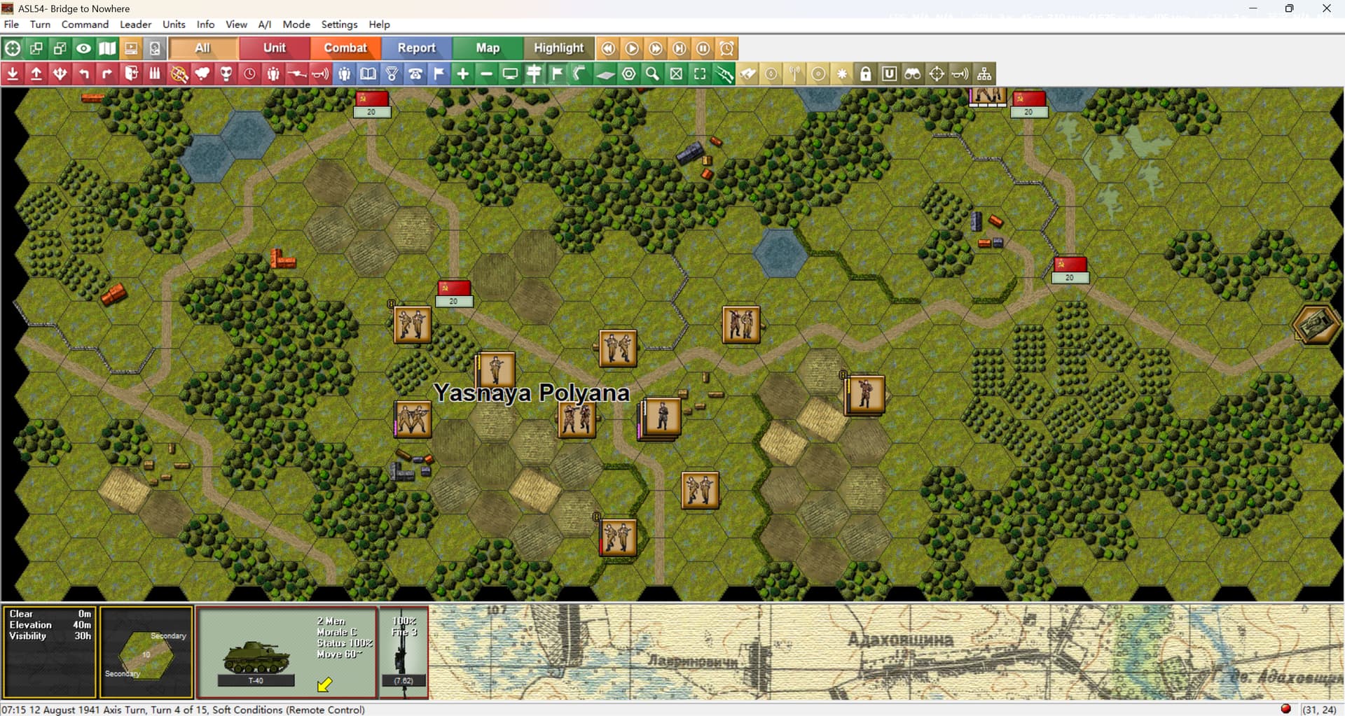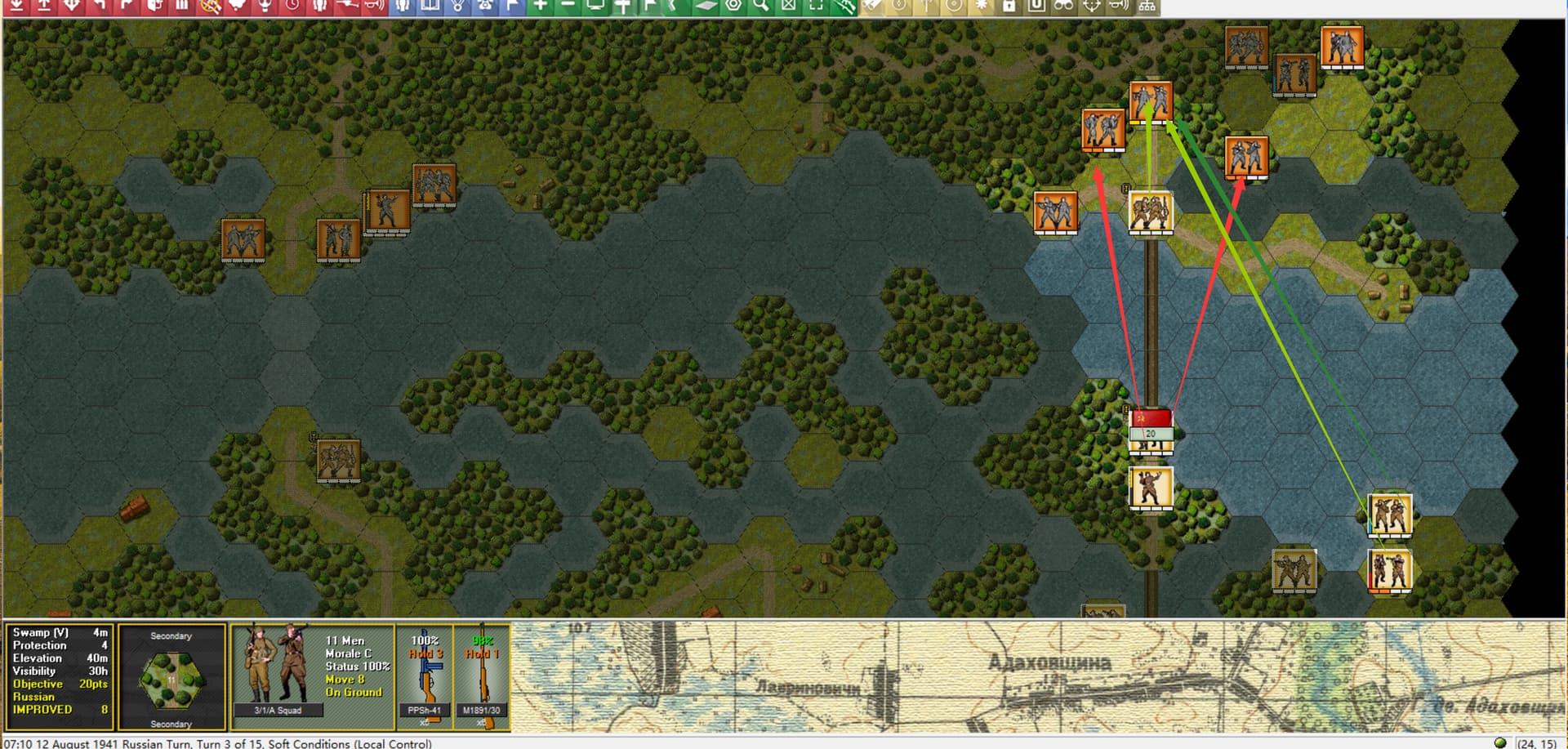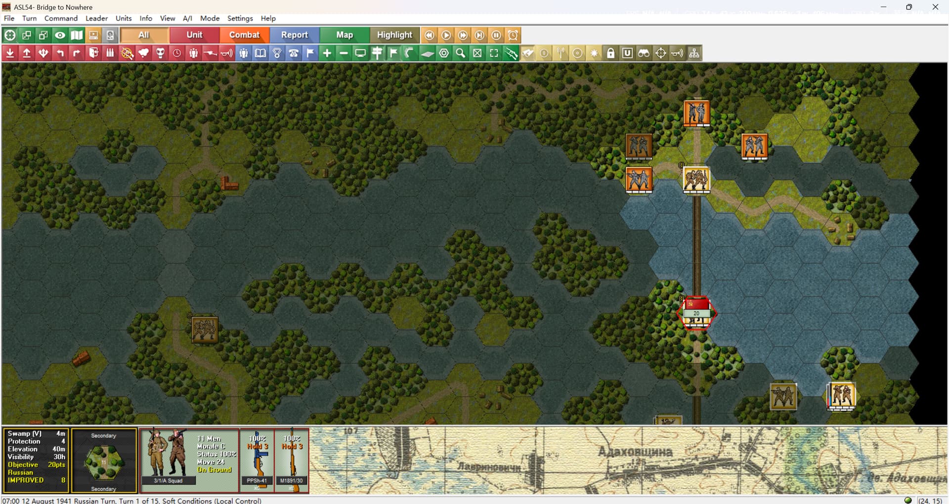 1941年7月,墨索里尼向东部战线派遣了兵力达6.2万人的意大利驻俄远征军(CSIR,Corpo Spedizione Italiano in Russia)。该远征军下辖3个师及配属部队,在罗马尼亚与德国国防军会师;为使第9“帕苏比奥”摩托化师(9th “Pasubio” Autotrasportabile Division)实现全摩托化,远征军在此地集中了所有军团车辆运输资源。这支得到军团炮兵及摩托车部队增援的部队,接到的命令是快速向布格河推进,随后转向南方,切断红军的渡河点。在这一阶段的一次典型小规模部队行动中,该师先遣部队的部分兵力为继续推进,不得不强行渡过一条小河。经过整夜的周密侦察,并以出人意料的隐蔽方式接近后,意大利军队对毫无防备的苏军发起了突袭。