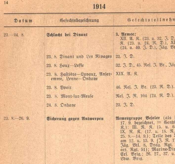 但《Die Schlachten und Gefechte des Grossen Krieges 1914-1918 (S und G)》在列举参与同场战役的部队时,明确将这两个国土防卫军旅与补充旅与第1水兵师分别列出。最终我们采用《S und G》与赫尔曼·克罗恩 Hermann Cron《1914-1918年德国陆军战史 Geschichte des Deutschen Heers im Weltkriege 1914-1918》作为编制定稿依据,呈现该师最精简的状态。