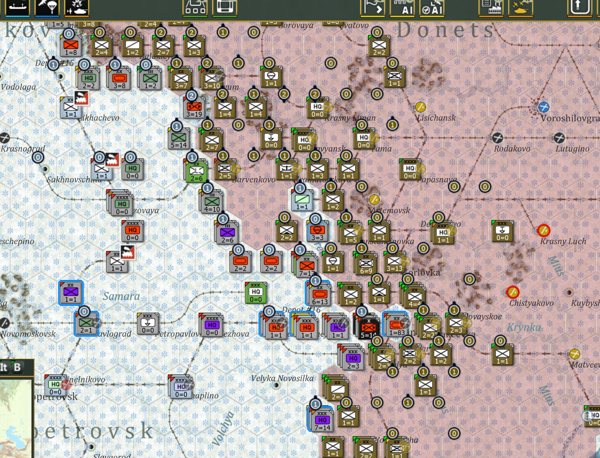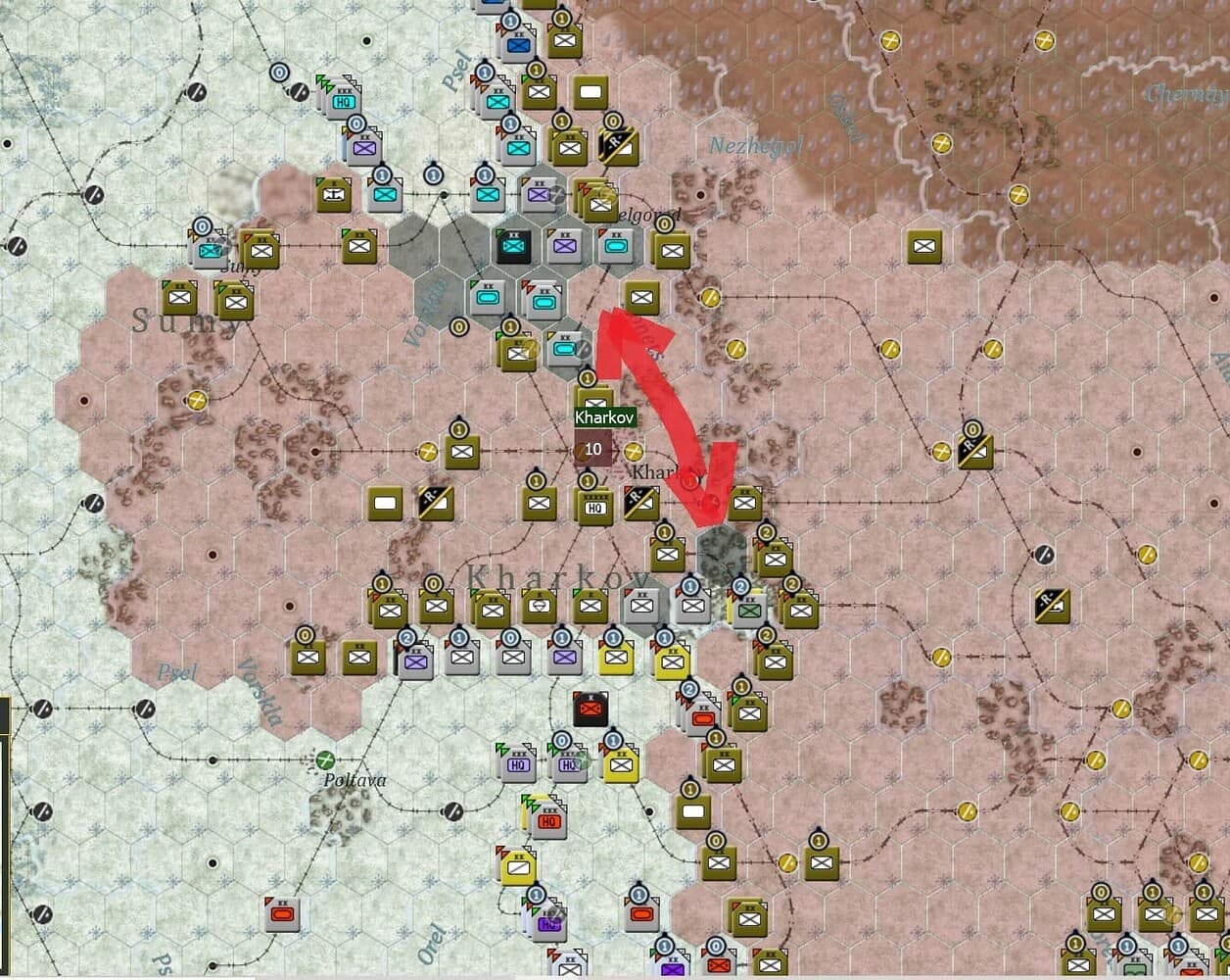 我玩这个剧本之前就看了你的帖子(打到乌拉尔)和一些其他的论坛上的讨论,所以我已经有意识地在泥浆期停止推进了。但是还是有无数出乎我意料的具体问题,我觉得除非翻手册(我还从来没做过这件事)否则我很难搞懂。